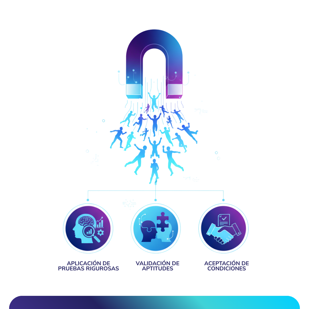 • Aplicación de pruebas rigurosas: Evaluamos habilidades y competencias a través de pruebas de aptitudes y psicométricas de vanguardia.